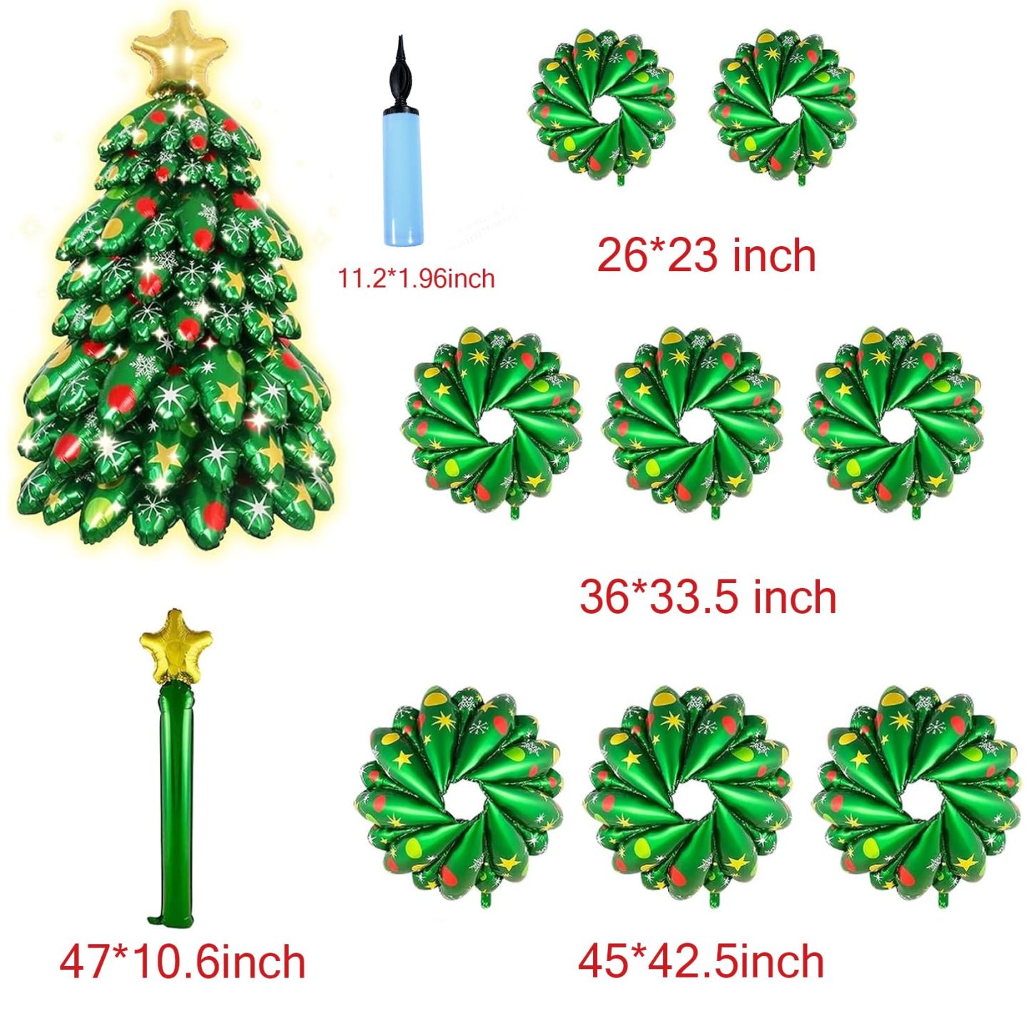 Christmas Balloon Garland Arch Kit – Festive Green, Red, and Gold Latex Balloons with Xmas Tree Balloons and Golden Starburst Accents for Holiday Party Decorations
