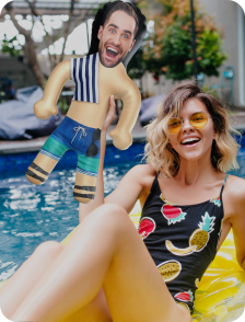 My friends surprised me with a custom inflatable minime of myself in a swimsuit, and I couldn't stop laughing! Such a fun and creative gift idea.